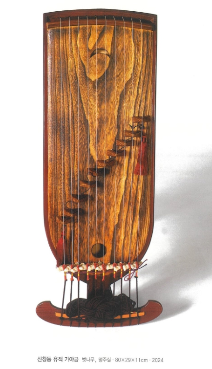 전시 작품에는 작가의 주 전공 분야인 가야금을 비롯해 아쟁, 거문고를 중심으로 구성됐는데, 전통 악기와 개량악기, 출토 유물을 재현한 악기까지 전통과 현대를 아우르는 다양한 현악기를 만나볼 수 있다.