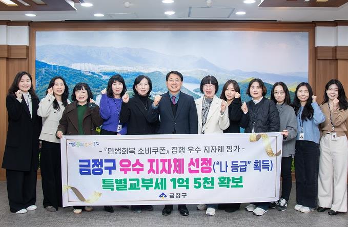 [뉴스노크=김인호 기자] 부산시 금정구는 지난 10일 행정안전부가 실시한 『민생회복 소비쿠폰』 집행 우수지자체 평가에서 “나 등급”을 획득하며 우수기관으로 선정됐다고 밝혔다.