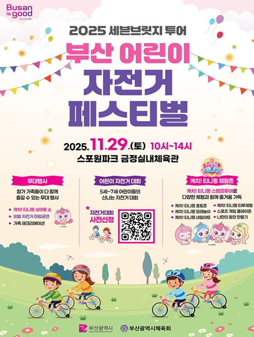 [뉴스노크=김인호 기자] 부산시는 오는 11월 29일 오전 11시 스포원파크 금정실내체육관에서 2025 세븐브릿지 투어 연계 '부산 어린이 자전거 페스티벌'을 개최한다고 밝혔다.