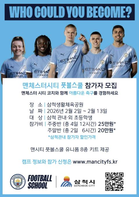 맨체스터 시티 FC와 삼척시가 함께 추진하는 MCFS 삼척 프로그램은 세계적 수준의 축구 교육 철학을 지역 유소년에게 전하고, 장기적으로 지역 축구 경쟁력을 강화하기 위해 마련됐으며, 지난 9월에는 유소년 맞춤형 축구 교육 프로그램을 운영했다.