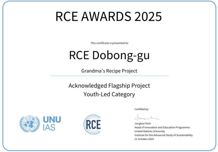 [뉴스노크=김인호 기자] 서울 도봉구가 ‘2025 RCE 어워드’(RCE Award)에서 ’우수 프로젝트‘(Acknowledged Flagship Project) 상을 수상했다.