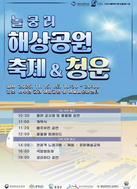 [뉴스노크=김인호 기자] 홍성군은 15일 ‘놀궁리 해상공원 축제&청운’을 개최한다.