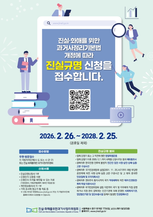[뉴스노크=김인호 기자] 예천군은 26일부터 제3기 진실·화해를 위한 과거사정리위원회 출범에 따라, 2028년 2월 25일까지 2년간 과거사 진실규명 신청을 받는다고 밝혔다.