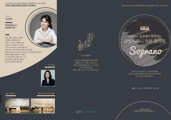 공연은 인사말과 개막 무대를 시작으로, 연습 과정과 음악 여정을 담은 영상 상영, 단원들이 직접 준비한 독창 및 듀엣 무대, 그리고 임경애 교수의 초청공연 등 다채로운 구성으로 꾸며진다.