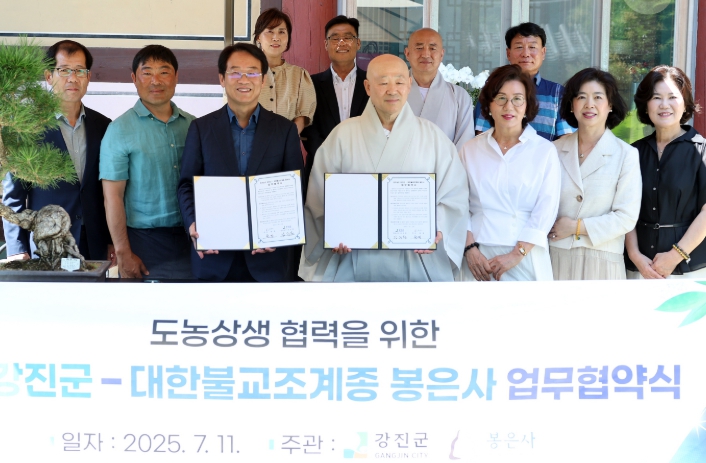 [뉴스노크=김인호 기자] 강진군과 대한불교조계종 봉은사가 지난 11일, 도농상생 협력을 위한 업무협약(MOU)를 체결했다.