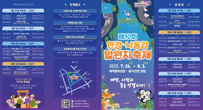 태백시 관계자는 “올해는 한강·낙동강 발원지 축제가 10회를 맞이하는 뜻깊은 해인 만큼 더욱 풍성하고 다채로운 콘텐츠로 시민과 관광객을 맞이할 계획”이라며, “열대야 없는 도시 태백에서 어린이부터 어르신까지 전 세대가 함께 즐길 수 있는 힐링 가득한 여름 축제를 경험하시길 바란다”고 전했다.