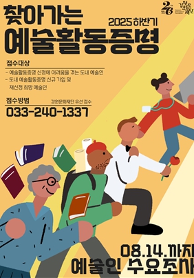 [뉴스노크=김인호 기자] 강원문화재단은 8월 14일까지‘2025 하반기 찾아가는 예술활동증명 등록지원 서비스’의 사전접수를 진행한다.