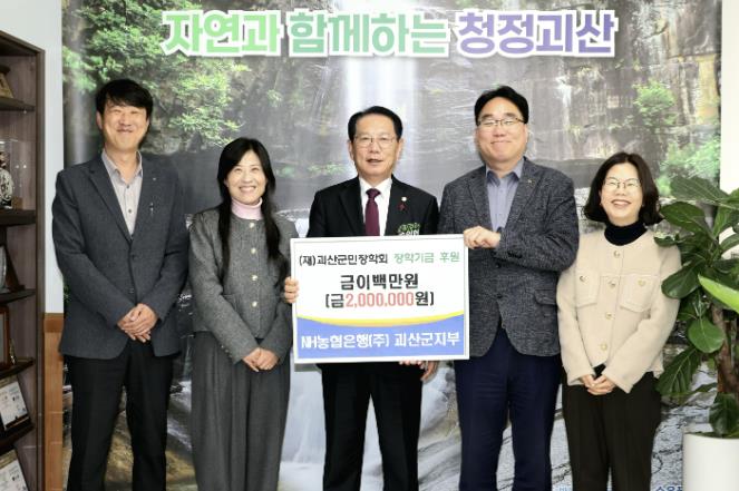 [뉴스노크=김인호 기자] 충북 괴산군 NH농협은행(주) 괴산군지부는 지난 18일 지역의 우수 인재 양성을 위해 써달라며 (재)괴산군민장학회에 장학기금 200만 원을 기탁했다.