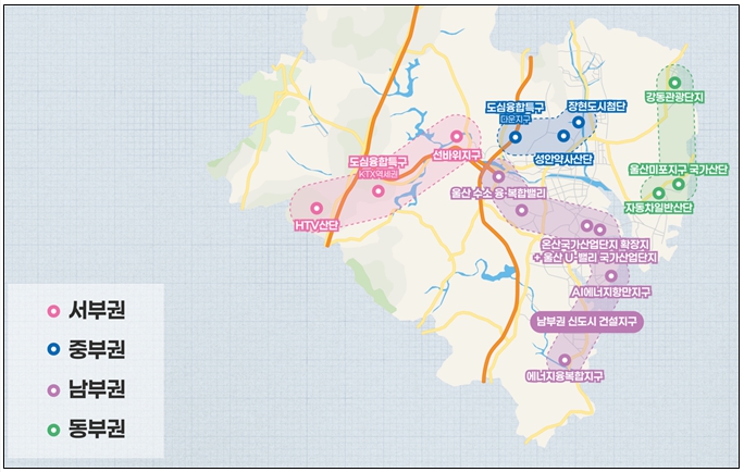 | ▲ 울산경제자유구역 권역별 현황도 |