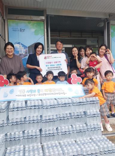 [뉴스노크=김인호 기자] 옥산면행정복지센터는 군산타타대우어린이집과 호수공원아이파크어린이집이 이웃돕기 성품으로 생수 500ml 1,000병을 기탁 했다고 17일 밝혔다.