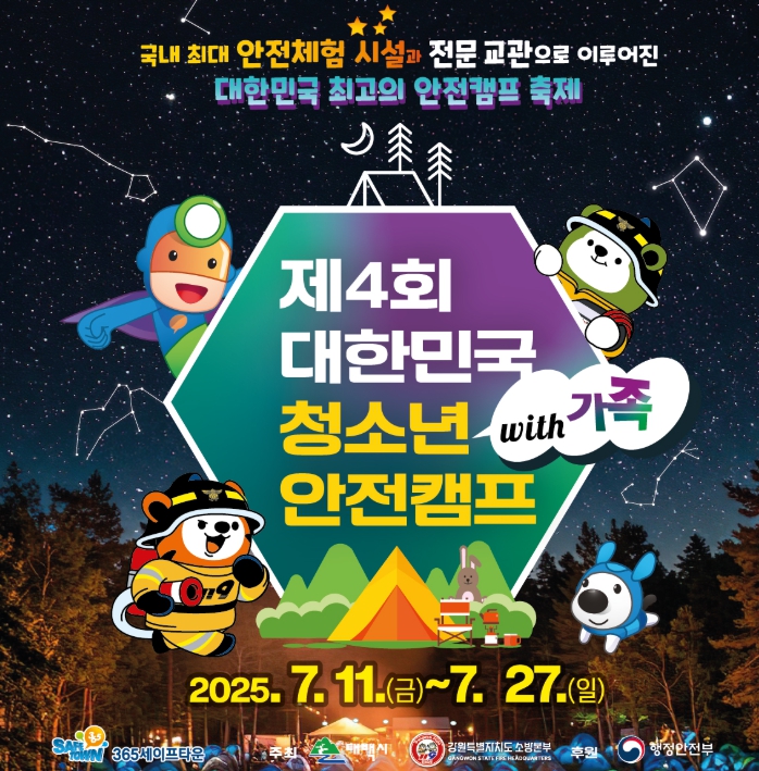 [뉴스노크=김인호 기자] 태백시와 강원특별자치도소방본부가 공동으로 개최하고 행정안전부가 후원하는 ‘제4회 대한민국 청소년 안전캠프’가 오는 7월 11일부터 365세이프타운에서 개막한다.