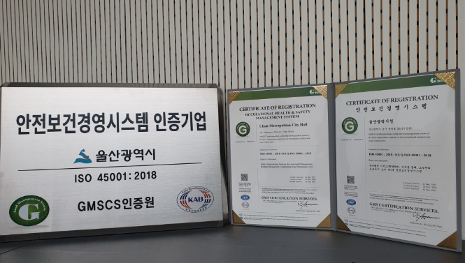 [뉴스노크=김인호 기자] 울산시는 국제표준화기구(ISO)로부터 ‘안전보건경영시스템(ISO 45001)’ 국제인증을 취득했다고 밝혔다.