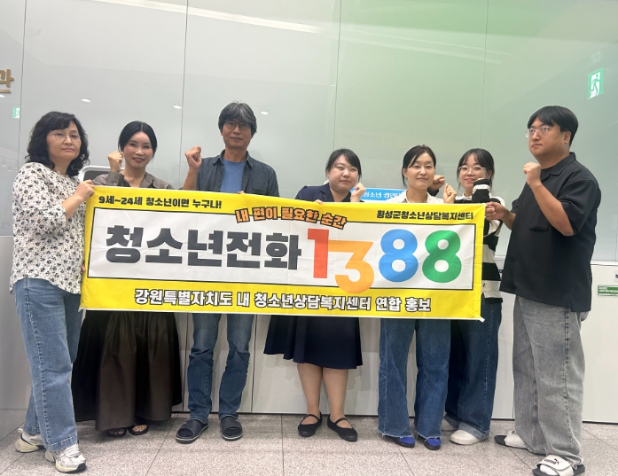 [뉴스노크=김인호 기자] 횡성군청소년상담복지센터는 청소년상담전화 ‘1388’에 대한 인식을 제고하고 도내 청소년안전망을 강화하기 위해 지난 24일 강원특별자치도 내 13개 청소년상담복지센터와 함께 연합 홍보 캠페인을 실시했다고 밝혔다.