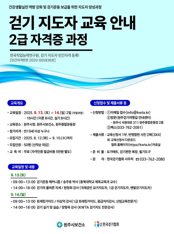 ▲ 하반기 걷기지도자 2급 과정 모집 안내문 |