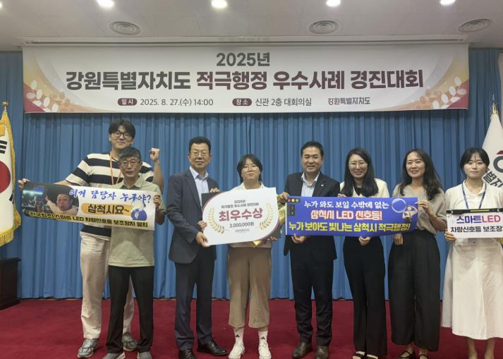 [뉴스노크=김인호 기자] 삼척시는 강원특별자치도가 주관한 2025년 적극행정 우수사례 경진대회에서 스마트 LED 차량신호등 보조장치 설치사업이 최우수사례로 선정되는 성과를 거두었다고 밝혔다.