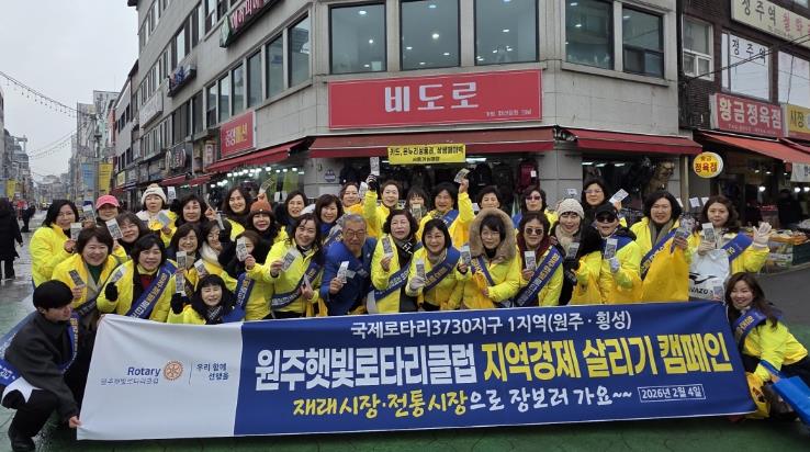 이날 원주햇빛로타리클럽 회원 50여 명은 전통시장에서 식료품과 생필품 등을 직접 구매하며 지역 상권 활성화에 힘을 보탰다. 또한 구매 물품 중 일부는 지역 내 취약계층 지원을 위해 전달하기로 했다.