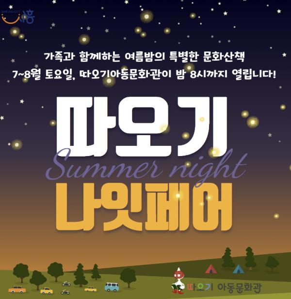 [뉴스노크=김인호 기자] 시흥시의 대표적인 아동문화공간인 따오기아동문화관이 여름철을 맞아 ‘따오기 나잇페어’를 7월 12일부터 운영한다.