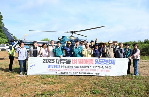 [뉴스노크=김인호 기자] 안산시는 기후 위기에 따른 병해충 피해에 대응해 최근 벼 출수기 전후 병해충 친환경 항공방제를 실시했다고 29일 밝혔다.