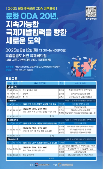 [뉴스노크=김인호 기자] 문화체육관광부는 한국문화관광연구원과 함께 8월 12일(화) 오후, 국립중앙도서관에서 문화 공적개발원조(ODA) 20주년을 맞이해 ‘지속 가능한 국제개발협력을 향한 새로운 도약’을 주제로 ‘2025 문화·체육·관광 공적개발원조(ODA) 정책 포럼’을 개최한다.