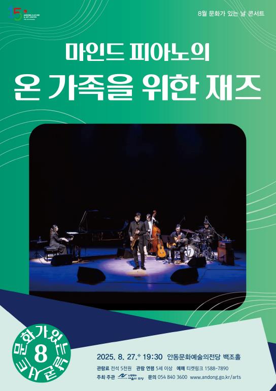 8월 문화가 있는 날 콘서트 ‘마인드 피아노의 온 가족을 위한 재즈’가 8월 27일 저녁 7시 30분 백조홀에서 열린다.