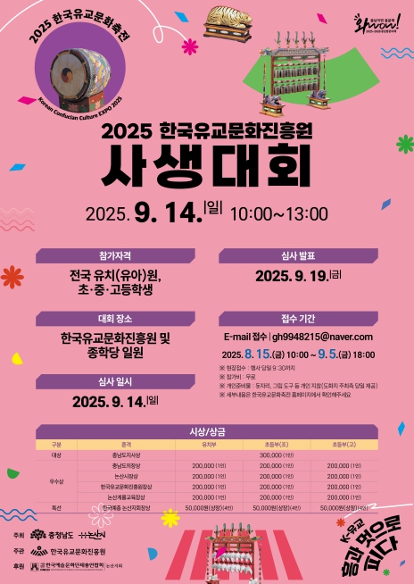 대회 접수 등 관련한 자세한 내용은 2025 한국유교문화축전 홈페이지를 통해 확인할 수 있다.