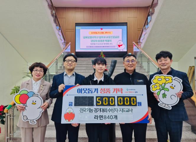 [뉴스노크=김인호 기자] 김해시는 2일 전국기능경기대회 수상자와 지도교사가 수상을 기념해 라면 840개(50만원 상당)를 기탁했다고 밝혔다.