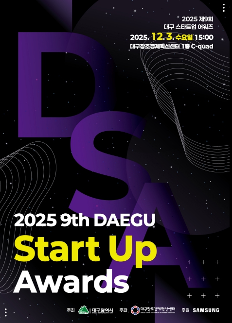 [뉴스노크=김인호 기자] 대구광역시는 12월 3일 오후 3시, 대구창조경제혁신센터 C-quad(1층)에서 ‘제9회 대구스타트업어워즈’를 개최하고, 지역 창업생태계를 빛낸 우수 스타트업 10개사와 창업지원 유공자 2명을 시상한다.