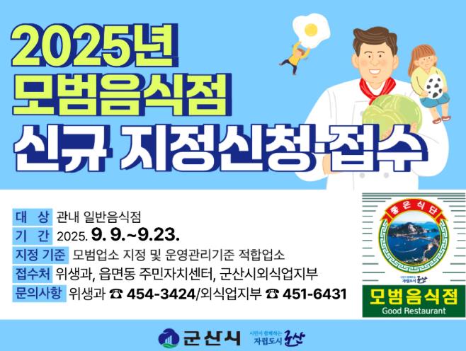 ▲ 군산시, 2025년 신규 모범음식점 모집 |