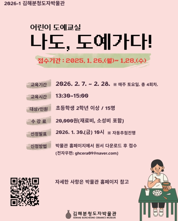 신청은 1월 26일부터 28일까지 김해분청도자박물관 누리집에서 신청원서를 내려받아 작성한 후 전자우편으로 접수하면 된다.