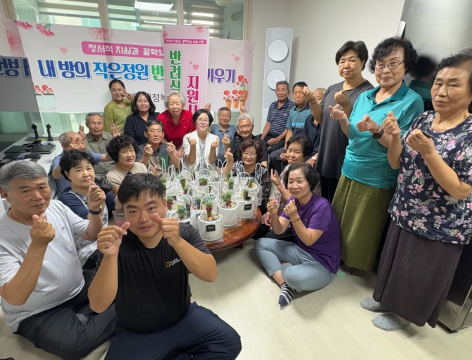 이번 프로그램은 어르신들의 심리적 안정을 돕기 위해 마련됐으며, 참여자들은 거점 경로당에서 반려식물을 심고 이름을 지어주며, 즉석 사진 촬영 등 소통의 시간을 가졌다.