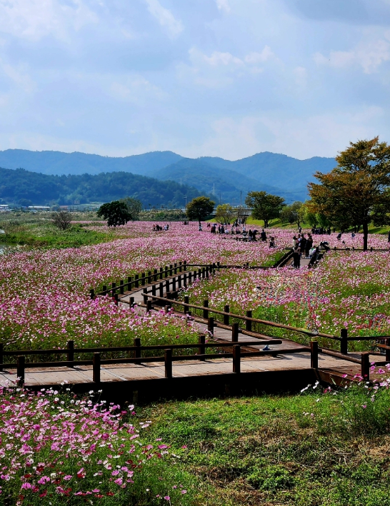 신선한 가을바람에 흩날리는 억새와 갈대, 코스모스를 배경으로 낭만 가득한 추억을 만들어 볼 수 있는 장소다.