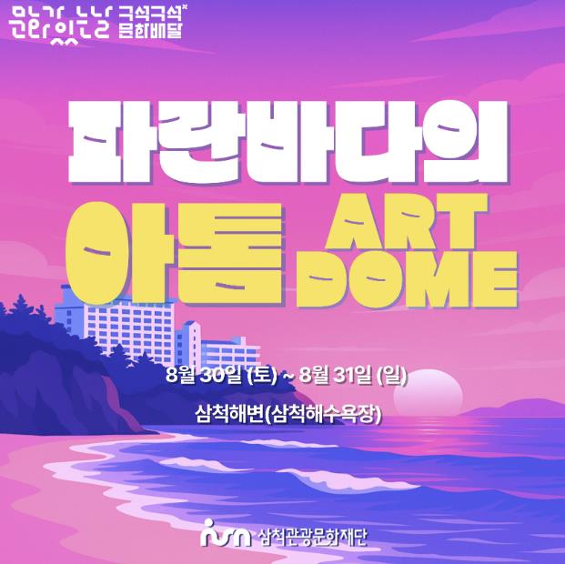 [뉴스노크=김인호 기자] 삼척관광문화재단은 8월 30일부터 31일까지 오후 5시부터 9시까지 삼척시 갈천동 삼척해변 일원에서 시민과 관광객을 대상으로 '문화가 있는 날, 구석구석 문화배달 - 파란 바다의 아톰(ART DOME)' 프로그램을 운영한다.