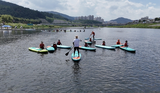 홍천강 별빛음악 맥주축제와 연계해 진행된 이번 행사는 평소 시민들의 휴식공간인 홍천강에서 패들보드를 체험해 볼 수 있는 이색 프로그램으로 구성됐으며, 총 500여 명의 참가자들이 수상레저를 즐겼다.