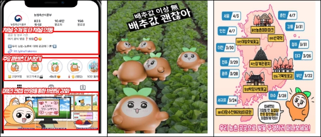 또한, 최근에는 AI 기술을 활용하여 배추 수급 안정을 위한 ‘배추 ASMR’, K-Food+ 수출 성과 홍보를 위한 ‘K-Food 키보드 ASMR’ 영상 등도 큰 화제를 모았다. 기존의 딱딱하고 어려운 정책 홍보 방식에서 벗어나, 시각‧청각적인 즐거움을 통해 정책 정보를 자연스럽게 전달하는 혁신적인 시도라는 평가다. 이 외에도 농식품부 장관이 직접 등장하여 정책을 유쾌하게 설명하는 ‘농터뷰’ 시리즈 등 다양한 기획과 참신한 아이디어를 통해 농업‧농촌 정책을 트렌디하면서도 정부 기관 특유의 신뢰감을 동시에 확보하여 주목받고 있다.