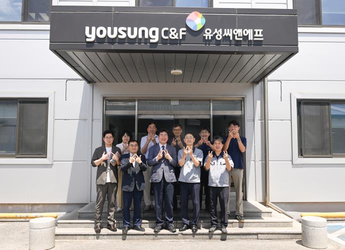 이날 원강수 시장은 유성씨앤에프의 생산시설을 직접 둘러보며 제품의 제조 과정과 품질관리 현황을 꼼꼼히 살핀 뒤, 임직원들과 기업의 성장과 지역사회와의 상생 방안에 대해 의견을 나눴다.