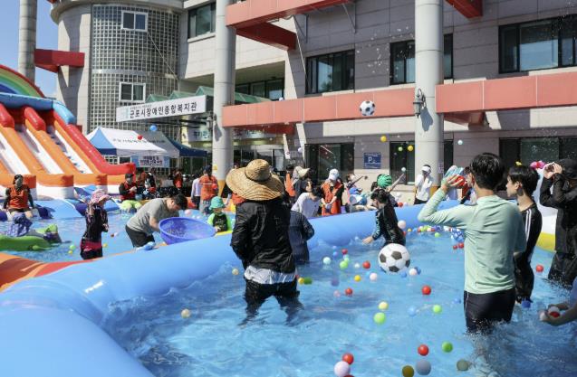 사전 신청을 통해 선정된 장애인 및 시민 200여 명이 참여한 이날 축제는 물놀이풀장과 슬라이드에서 즐기는 물놀이 행사뿐만 아니라 스티커 타투 체험, 물속 보물찾기 등 다양한 프로그램을 운영하며 참여자들의 높은 호응을 얻었다.