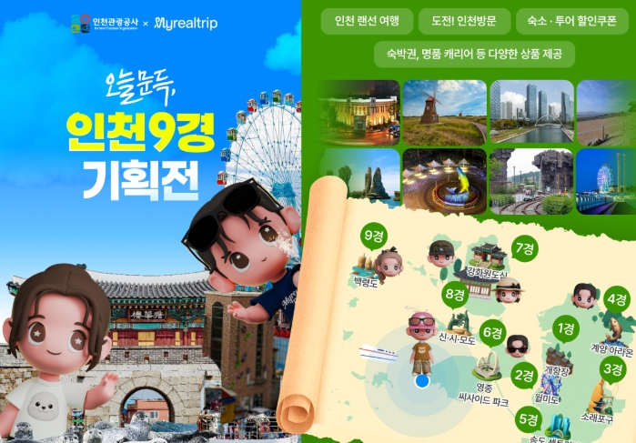 [뉴스노크=김인호 기자] 인천관광공사는 인천 단독 관광상품 온라인 기획전 '인천9경 숙박‧체험상품 기획전'을 오는 9월 8일부터 11월 30일까지 온라인 플랫폼‘마이리얼트립’에서 개최한다.