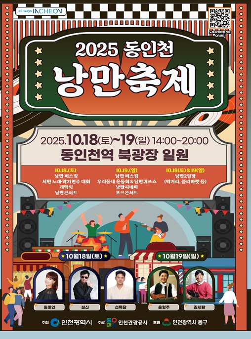 [뉴스노크=김인호 기자] 인천광역시는 오는 10월 18일부터 19일까지 이틀간 동인천역 북광장에서 ‘2025년 동인천 낭만축제’를 개최한다고 밝혔다.