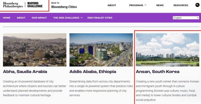 | ▲ 안산시, 美 블룸버그 재단 글로벌 시장 챌린지 최종 후보 도시 올라 |