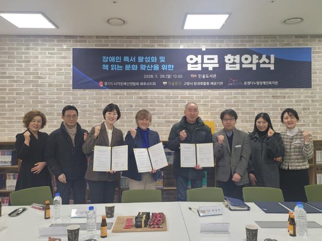 [뉴스노크=김인호 기자] 파주시 한울도서관은 지난 26일 장애 특화 서비스 확대를 위해 관내 주요 유관 기관 및 단체와 업무협약식을 개최했다.