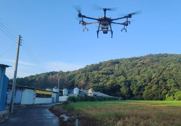 | ▲ 파주시, 무인기(드론) 활용해 야생 멧돼지 기피제 살포 |