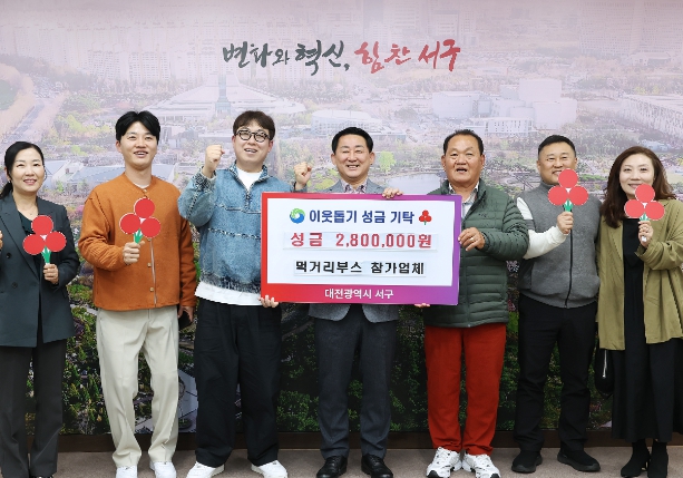 [뉴스노크=김인호 기자] 대전 서구는 2025 아트페스티벌 먹거리 부스에 참여한 일부 업체로부터 어려운 이웃을 위해 사용해 달라며 수익금 일부를 기탁받았다고 28일 전했다.