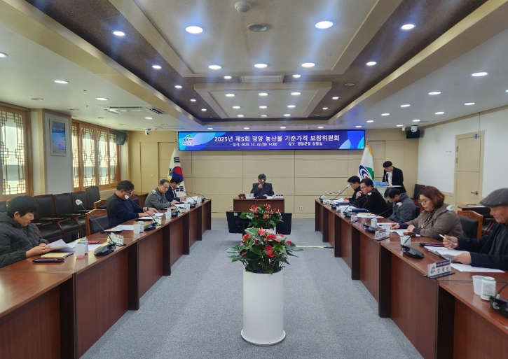 | ▲ : 지난 22일, 제5회 기준가격 보장위원회에서 ‘2026년 청양 농산물 기준가격 보장제 기준가격’을 확정하고 있다. |