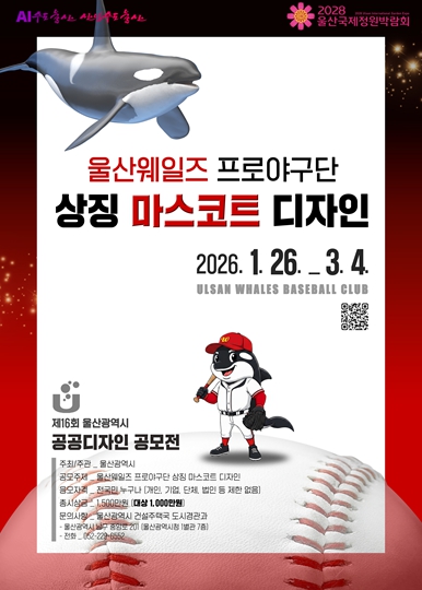 [뉴스노크=김인호 기자] 울산시는‘울산웨일즈 프로야구단 상징 마스코트 디자인’을 공모 주제로‘제16회 울산광역시 공공디자인 공모전’을 개최한다고 밝혔다.