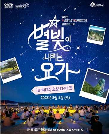 강원관광재단 최성현 대표이사는 “별빛 아래에서의 요가는 단순한 운동을 넘어 자연과의 교감을 통해 몸과 마음의 균형을 찾는 특별한 경험이 될 것”이라며, “많은 참가자들이 태백의 고요한 자연 속에서 자신을 되돌아보고, 도시의 번잡함에서 벗어나 새로운 에너지를 얻는 소중한 기회가 될 것”이라고 덧붙였다.
