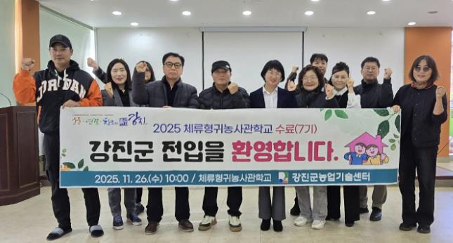 [뉴스노크=김인호 기자] 강진군은 지난달 26일 체류형귀농사관학교 7기 교육생 수료식을 열고, 9개월간의 체류·교육 과정을 성공적으로 마친 교육생들이 강진에서의 새로운 정착 단계에 들어섰다고 4일 밝혔다.