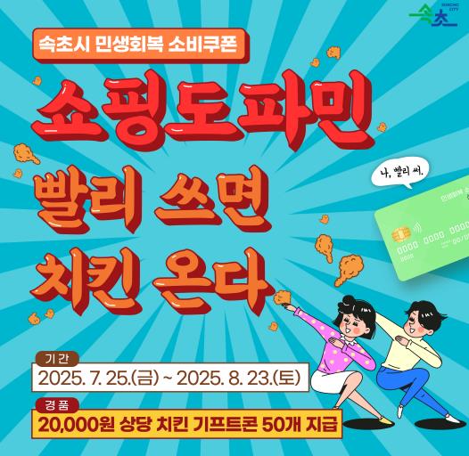 한편, 속초시는 소비쿠폰의 지급 시작과 동시에 속초시 공식 SNS를 통해 지급 방법과 조기 사용을 안내하는 직관적인 홍보를 동시에 시행했으며, 오는 8월 15일까지를 민생회복 소비쿠폰 촉진 주간으로 지정하고 적극적인 사용 독려에 나서는 등 침체된 경기 회복을 위해 역량을 총집중하고 있다.