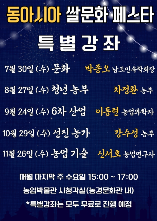 ▲ 동아시아 쌀 문화 페스타 특별강좌 홍보물 |