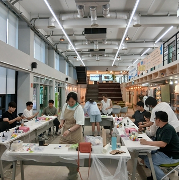 △ “반짝, 내 손안의 여름” : UV 레진으로 스마트폰 그립톡을 제작하는 체험. MZ세대에게 인기 폭발!