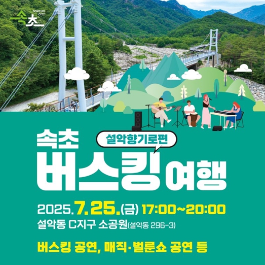 속초시 관계자는 “이번 공연을 통해 설악동의 여름을 더욱 풍성하게 만들고, 시민과 관광객이 문화예술을 일상에서 자연스럽게 즐기는 계기가 되길 바란다”고 밝혔다.